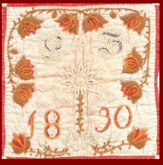Fig. 7 FRAKTUR MOTIF WEDDING OWNER QUILT BLOCK, Initialed “E. S., 1830.” MAKER UNKNOWN Courtesy of Winterthur Museum Collection, Winterthur DE, 2000.0071